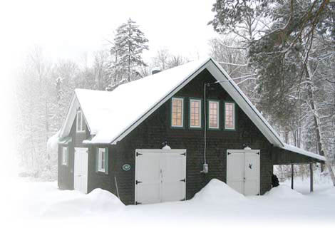 Privacy in an estate setting.....Park your vehicle in the century-old building which once housed horse-driven carriages. Walk upstairs to the rustic elegance of the modern ski loft, with its equipped kitchen, skylights, whirlpool tub, living and dining areas, 2 bedrooms, sleeping for 6, cozy gas heat, and outdoor deck.