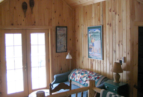 Sleep sofa with featherbed mattress, handmade quilts, skylight, French doors opening to deck, TV, VCR, CD player, remote control ceiling light/fan, Adirondack cedar railing.